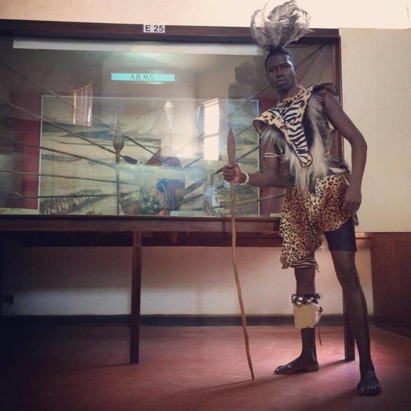 DO: The choice of the traditional warrior’s costume is in line with the story and the setting of the Luoetry show. Otherwise, the other cultural wear for chiefs and the like were also accessible. The Luoetry Show is the story of a Luo warrior who has deep understanding of his origin and heritage. He uses this fortress of confidence and foundation of his manhood to find love by way of dance, song and words. Upon finding love, the warrior is propelled to a point of responsibility that gives him the voice to speak about the political, cultural, societal and economic realities of his greater society Uganda. So the Luo warrior’s costume was chosen to portray the character in picture.