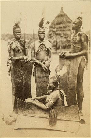 Above: among the earliest photographs made in what is now northern Uganda, Acholi warriors by Richard Buchta, January 1879