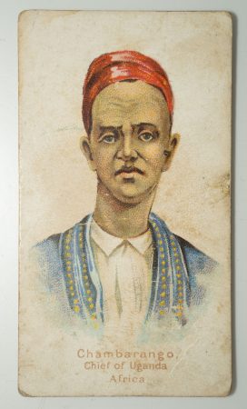 These portraits of “Mtesa, Emperor of Uganda” and “Chambarango, Chief of Uganda” are derived from an engraving based on the photograph produced in 1875 by Hnery Morton Stanley or someone in his caravan.