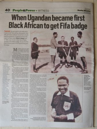 This is what appears on the copy of his application form of the Uganda Protectorate Education Department Overseas Scholarship Scheme in 1959 : “I have been a football referee since 1951 which I do during my spare time in an ENTIRELY VOLUNTARY CAPACITY. Also I have been responsible for training and coaching referees for the last 5 years particularly in BUGANDA. […] To gain more experience and confidence in football refereeing and coaching which I must do if I am to keep at the top as I have a the big job of guiding and coaching my fellows through out the country”.
