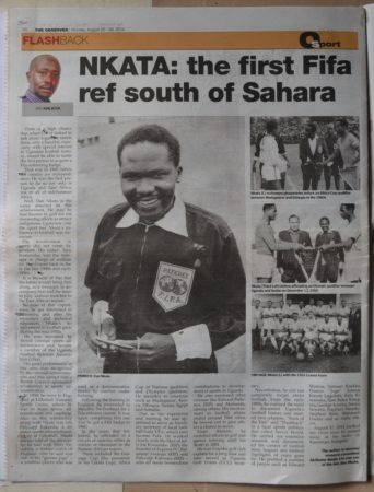 In a move to improve the standard of football refereeing and soccer in Uganda in the late 1950s, Daniel Nkata, who was in charge of referee training throughout Uganda, through the Protectorate Government Sports Officer, obtained a British sponsorship to do intensive methods of instruction course in the UK on an understanding that on return he would share his experience with fellow referees for the betterment of the game. From England, with Uganda already a member of FIFA, he was sent to FIFA Referees/Instructors Course held at Ecole Internationale de Sports, Macolin, Switzerland. These courses were of great value to him and in many ways a boost to Ugandan Football and its refereeing. He was the only delegate from the East/Central African countries. Among his prominent students was Referee Edward Bukenya. This experience saw him being the first (black) person to be awarded the FIFA Badge in East and Central Africa and indeed south of the Sahara. Uganda therefore led in FIFA refereeing status. It is also at this time the Uganda referee changed his garbal appearance taking to the internationally recognised black and white, and doing away with what was East African ”all white” fashion.