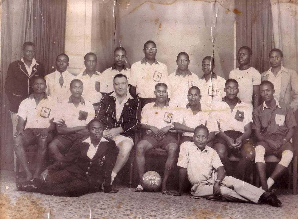 “Uganda Cranes Football Team 1952. Tera Womeraka standing first left was team welfare manager. He was Dan Nkata’s father and therefore my [Ian’s] grandfather”