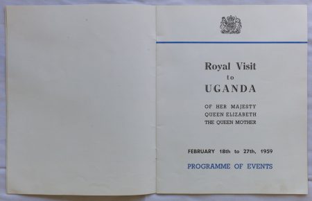 Booklet of Program of Events planned for the ‘Royal Visit to Uganda’, 1959.