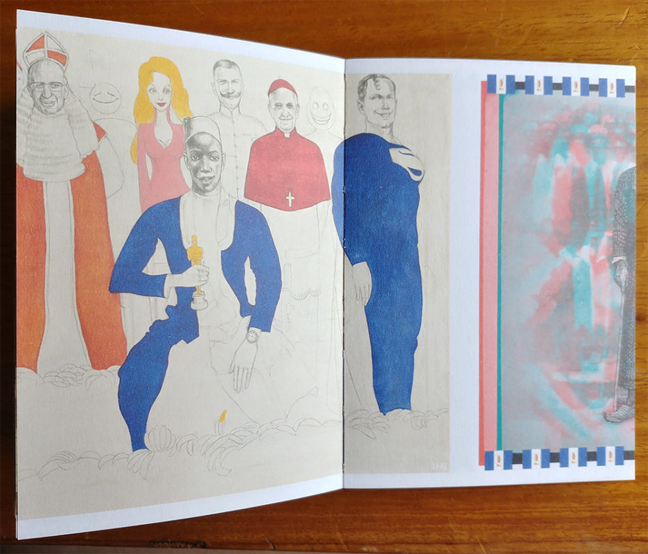 Andrea’s conversation with Eria (Sane) Nsubuga in the book follows this conversation of how provocative art is especially in deconstructing histories. His method was to use newspapers as his media of choice. He goes on to say that “politicians and the media are in bed together. The former get the first pages in order to keep their sway over the masses.” Stultiens and Nsubuga engage about personalities like Anne Frank, contextualising Christianity in Africa and more… It is a very enjoyable part of the book.