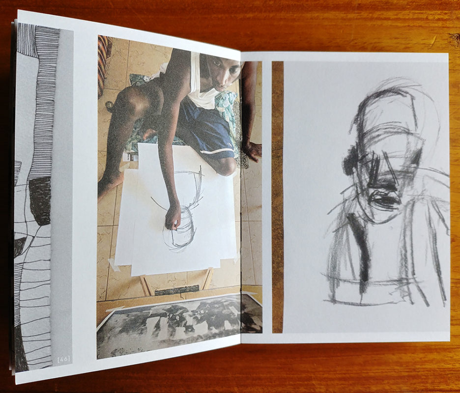 “Because the details of the past are really not clear, I try not to be offensive regarding the darker times and brighter times. I can’t get clarity as to what brought us to this place – was it the colonialist who brought this? Was it the Muganda in the picture? Was it the religious factions coming in? What I can see are just the dark moments in history and the ones we cannot really be sure about (depending on vantage point or side). When I am lost, don’t know anymore where I am as a Ugandan, I look down and the drawing is done.”