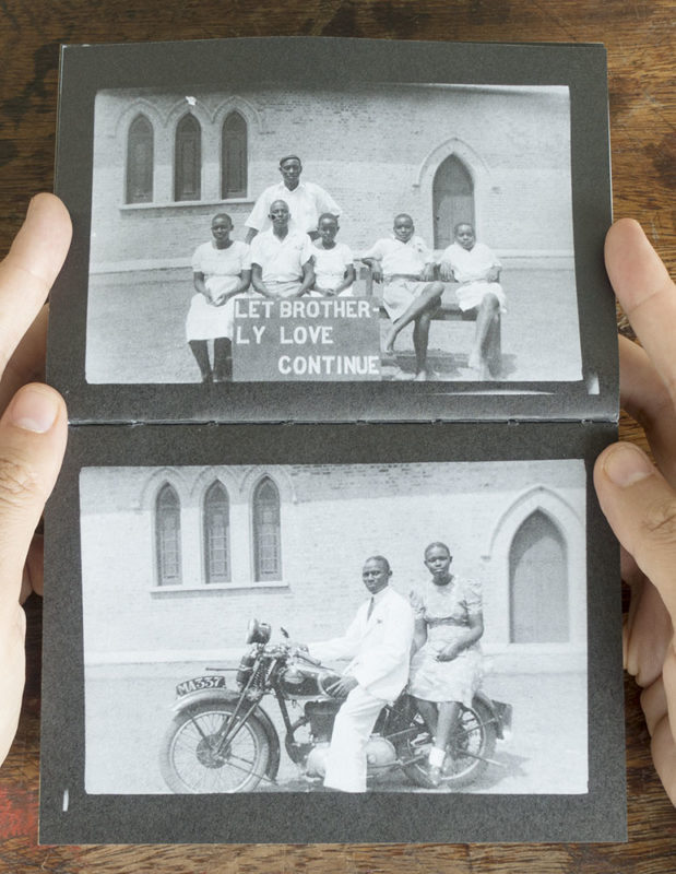 This is the review of the second book in the Ebifananyi series on the photographic legacy of Musa Katuramu, by Joel Ntwatwa, aka Nevender. The review of the first book can be read here. Joel’s words are illustrated by selected pages from the book in the hands of Andrea Stultiens, who made it.